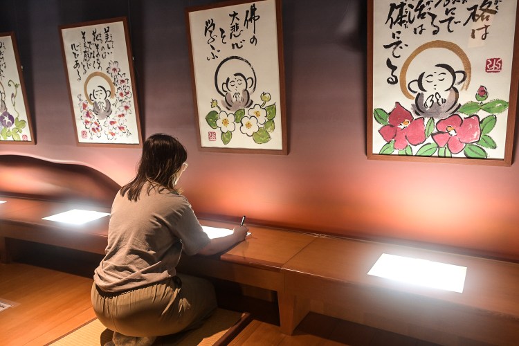 Visitors can experience the World of Gratitude and Thankfulness (acknowledging Amitabha Tathagata’s benevolence and responding with gratitude) and shakyo (hand-copying sutras). The thin workshop paper is placed on sutra paper illuminated from below by a screen built into the table. That allows anyone, even those unfamiliar with Japanese, to easily trace sutra letters. The exercise will surely calm one’s mind.