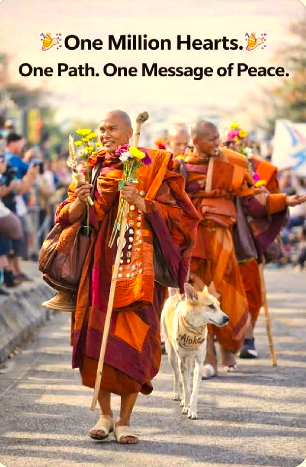 Peace walks are a cherished tradition in Theravada Buddhism. Some of the monks have walked barefoot or in socks during parts of the journey, to feel the ground directly and be present in the moment.