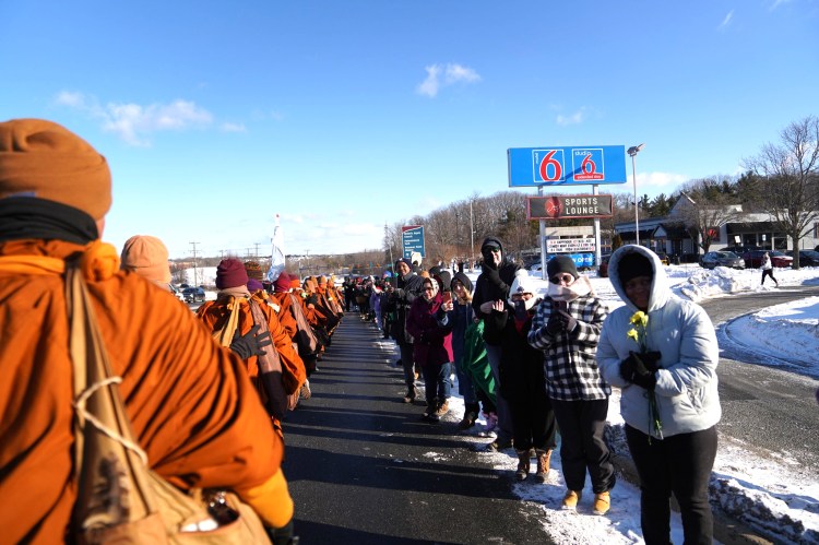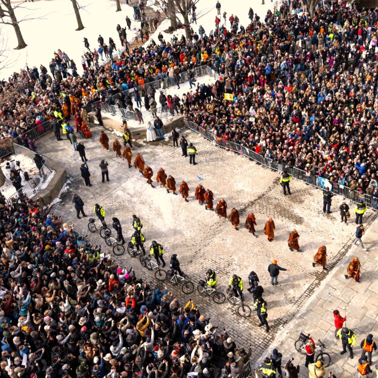 Thousands gathered along icy sidewalks to watch the monks’ quiet procession that began in late October.