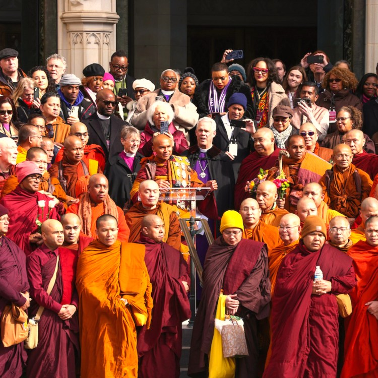 Flanked by dozens of faith leaders across traditions — including Washington Episcopal Bishop Mariann Budde, who helped host the interfaith gathering — Pannakara was visibly moved by their shared cause for peace.